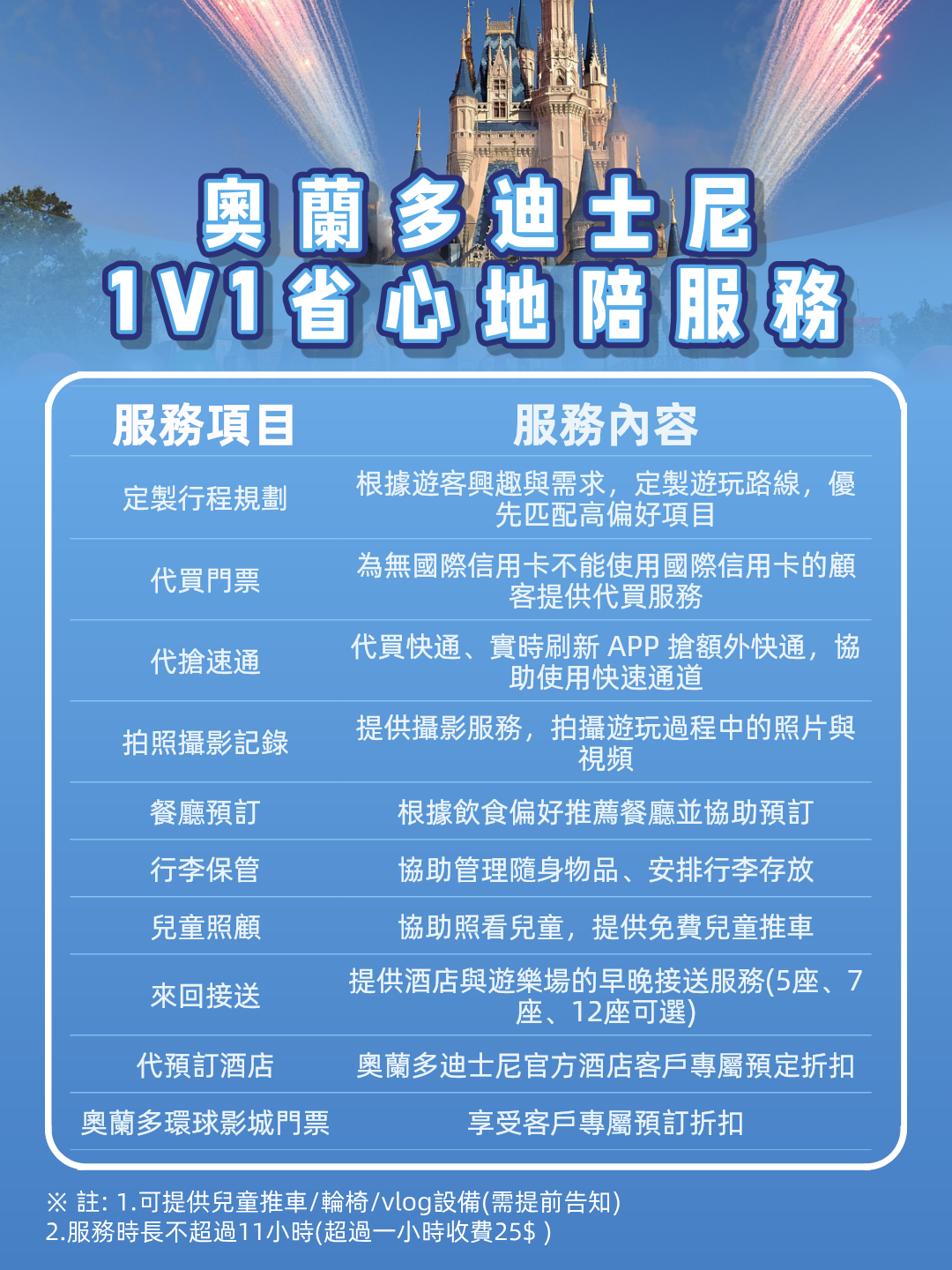 3、由於是基於奧蘭多迪士尼的行程,沒有特殊情況均按計劃安排,請聽從管家安排,如您需要臨時調整,我們會盡力滿足但不保證行程效果;