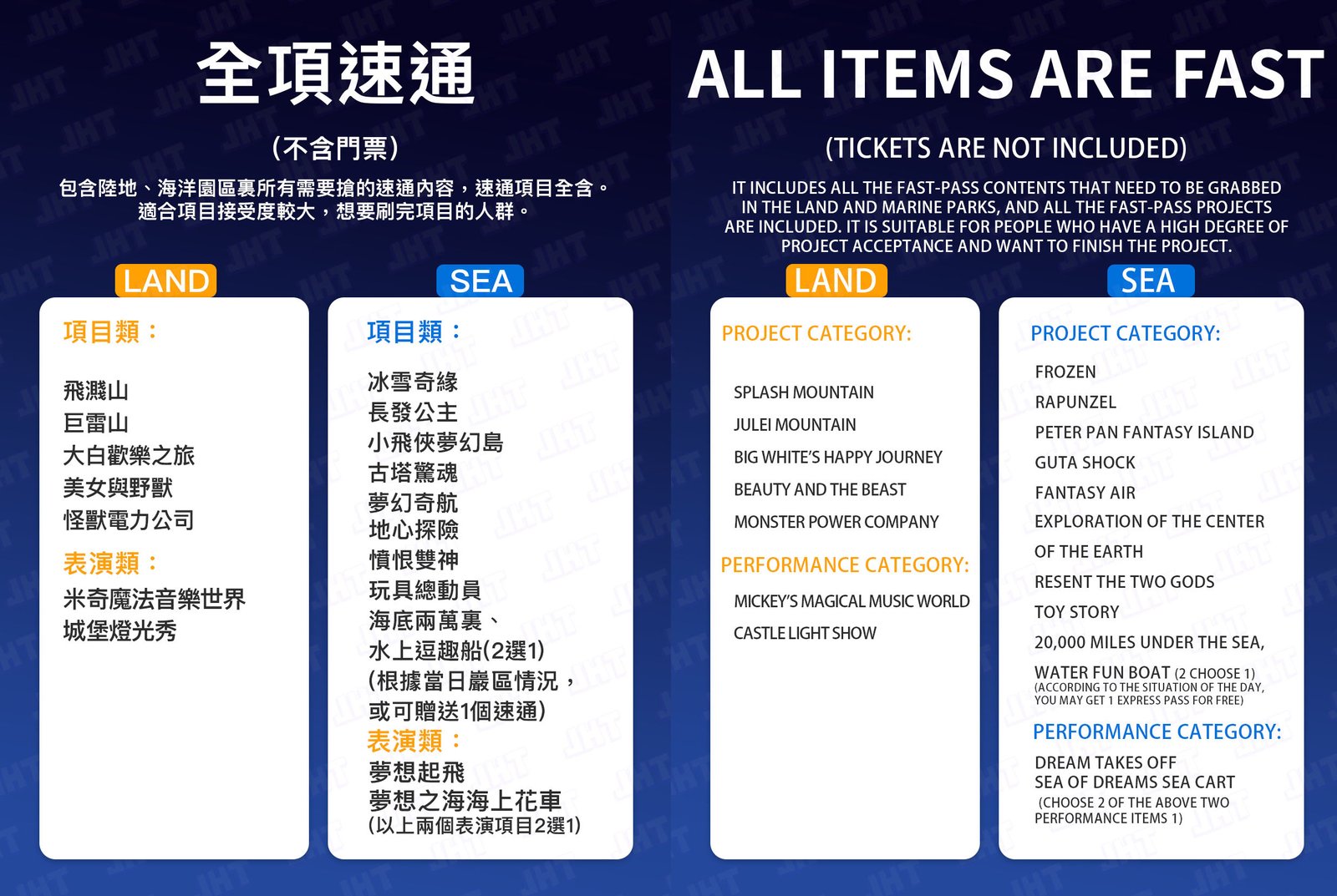 專為極致項目體驗玩家,基於當日園區情況,最合理的頂目遊玩安排,最全面的PP、DPA項目準備.最詳細的園區線路規劃,全程遊玩服務